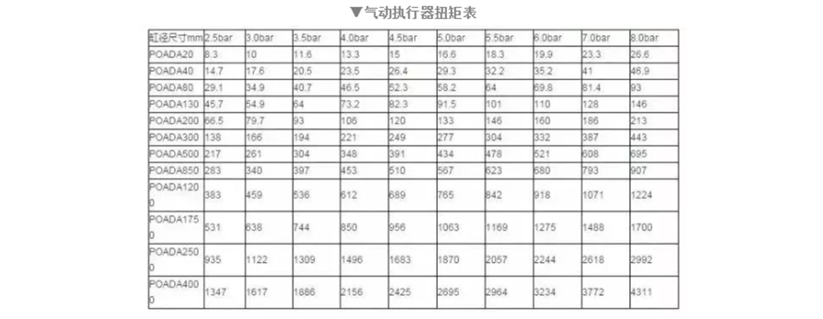Kapag ang valve torque ay 210NM, ang air source pressure ay 5bar lamang, at ang medium ay non-lubricated water vapor, na isinasaalang-alang ang safety factor, dagdagan ang safety value ng 25%, which is 262NM. Hanapin ang kaukulang torque kapag ang air source pressure ay 5bar ayon sa double-acting output torque table. halaga. Dapat pumili ng 277NM, ang modelo ay POADA300.
