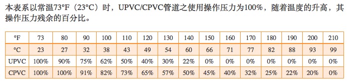PS: May mga sinulid na pipeline, ang bahagi ng UPVC ay hindi dapat lumampas sa 110°F (43°C); ang bahagi ng CPVC ay hindi dapat lumampas sa 150°F (66°C).