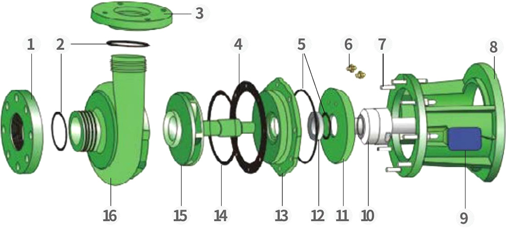 16 Centrifugal pump katawan ng bomba FRPP.PVDF