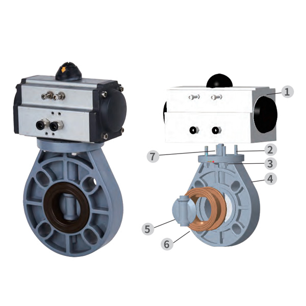 PVC-C Pneumatic Automatic Butterfly Valve, Center Seal, Soft Seal, DN32-1000, Industrial at Household at Plastic Butterfly Valve