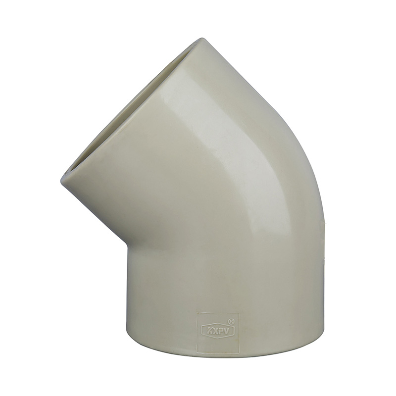 Super matibay Earthy Yellow Melt Socket 45° Equal Shape Elbow Propesyonal na Mga Karaniwang Dimensyon DN15-100 Plastic Pipe Fitting PPH 45° Elbow